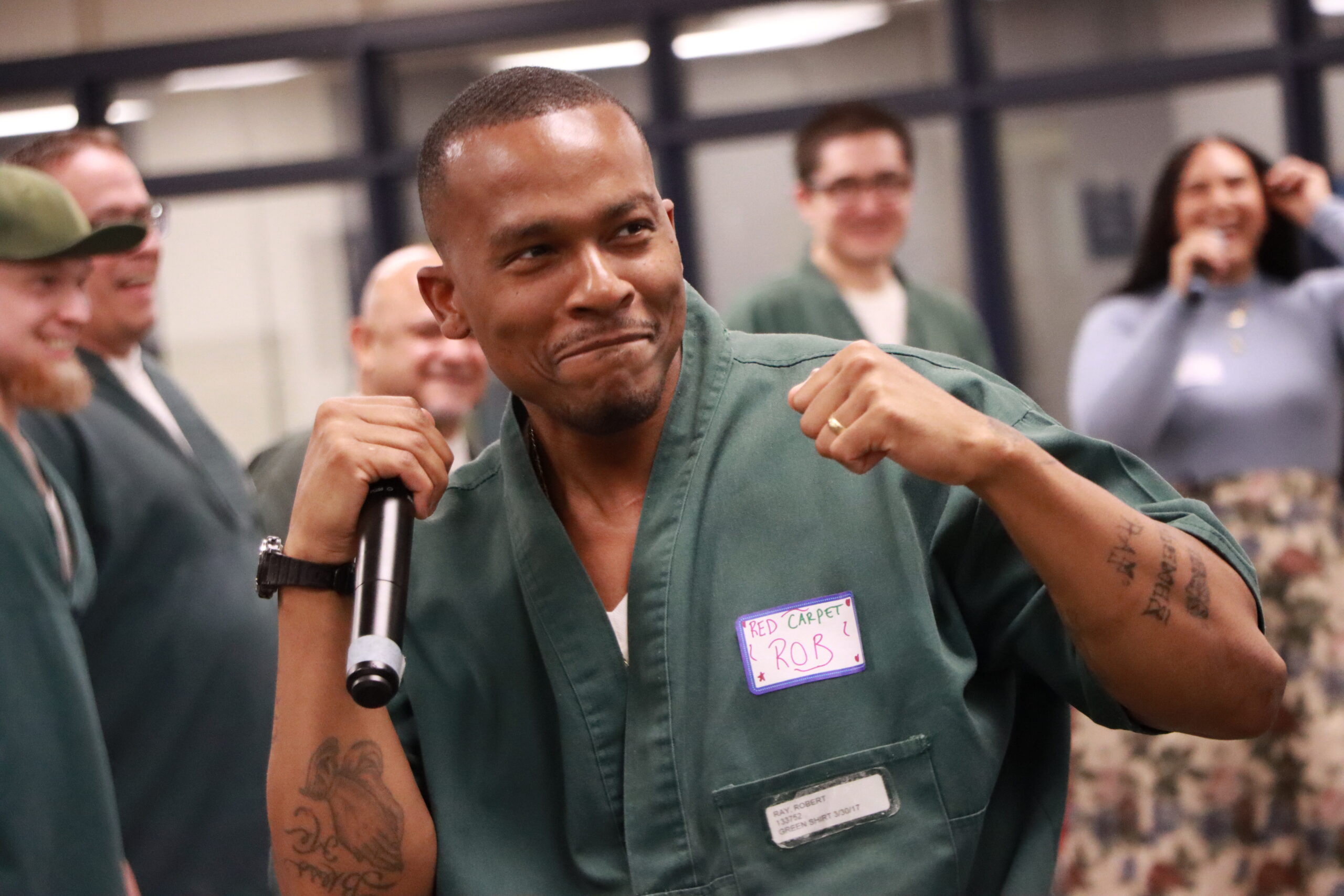 There are so many individual stories, so much trauma and tragedy…sometimes it’s a challenge to “hold” it all! In this article, I want to share about one man, who’s a graduate from the program and is now a Peer Facilitator in the Breakthrough program supporting others in their journey through the program and helping them ready themselves for their release. This gentleman is in for life, and mentioned in our conversation that he used to be on death row. I had shared that we’ve all been through a lot in life, but that most of us would not have the resilience, courage or dedication that I’ve seen in the men in this program. His response was that you cannot compare. That my problems are big for me and he’s here to listen and support me in my discomfort and growth. He shared that when he was on death row, fellow incarcerated individuals wouldn’t bring their problems to him because he was on death row and they were not. He told them the same thing he told me. I have no idea what he did, or how he got off death row. What’s important is that he has hope, he lives for the moment, and he is a glowing light. He is about to graduate Cum Sum Laude with a degree in Psychology, and will be addressing his “why:” why he insisted on receiving a degree in higher education even though he’s in prison for life – during the College Graduation.